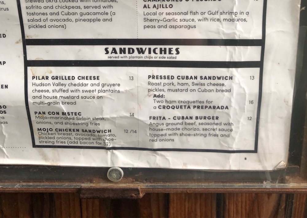 Mojo marinated chicken breast, sauted onions, and pressed Cuban bread